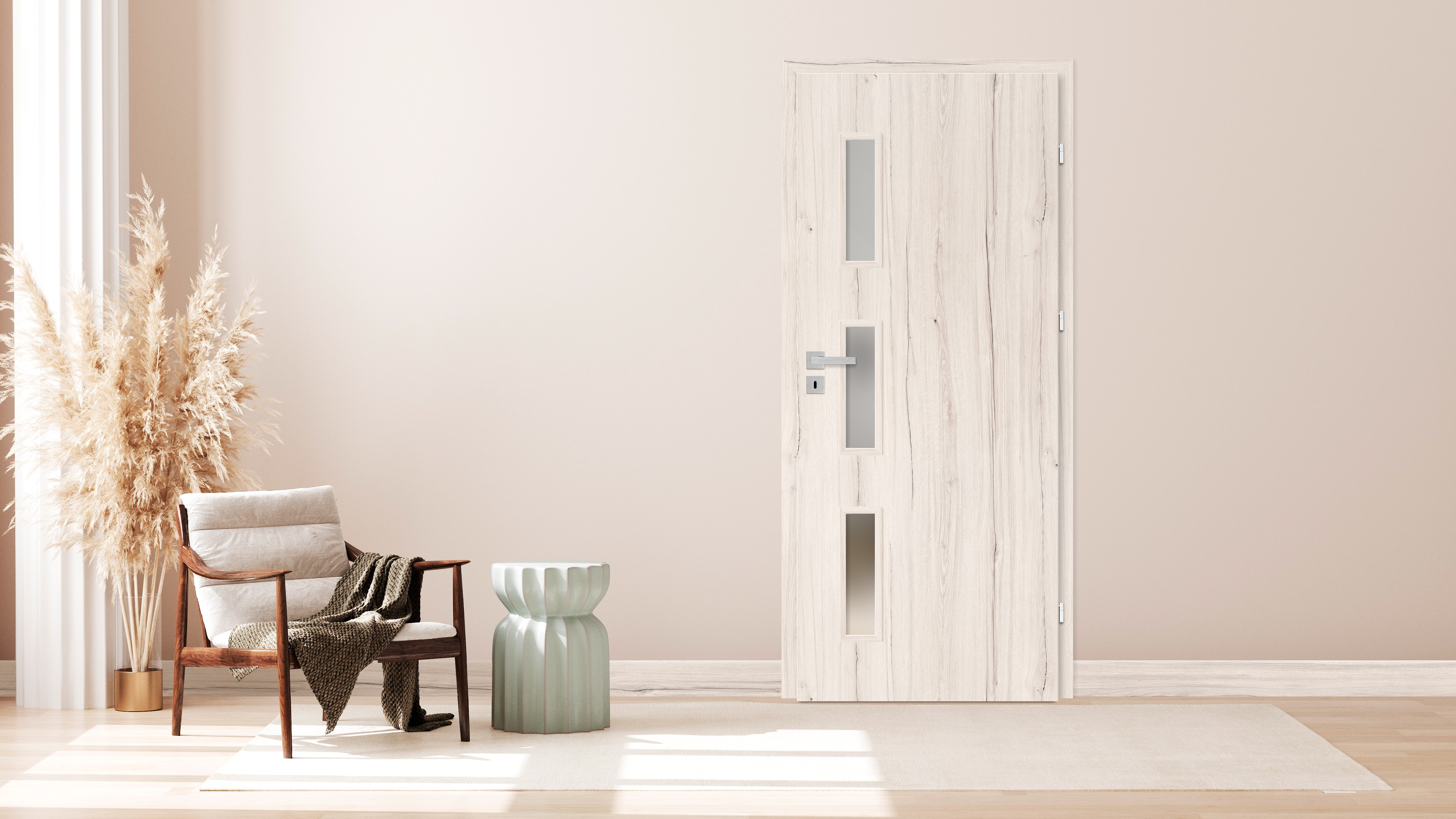 A három közepes méretű üveg különböző elhelyezése az ajtón lehetővé teszi, hogy mindenki megtalálja a számára legmegfelelőbb üvegkiosztású modellt, akár függőleges, akár merőleges mintáról van szó.
